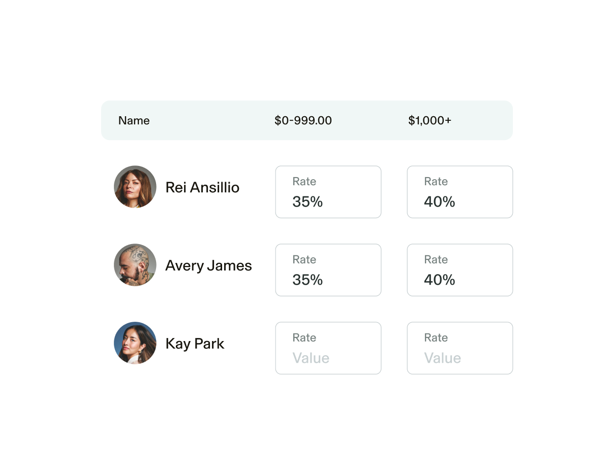 Earn flexible fixed-rate or tiered commissions, customized across staff members, services, and products. With personalized commissions, see how your hard work is reflected in your payouts.